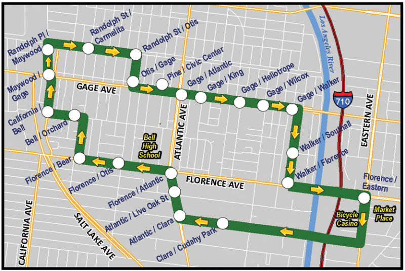 The best way to get around Bell and major destinations in the neighboring cities of Cudahy and Bell Gardens. Services operates 6 days a week. Bus fare is of $0.50 one way.